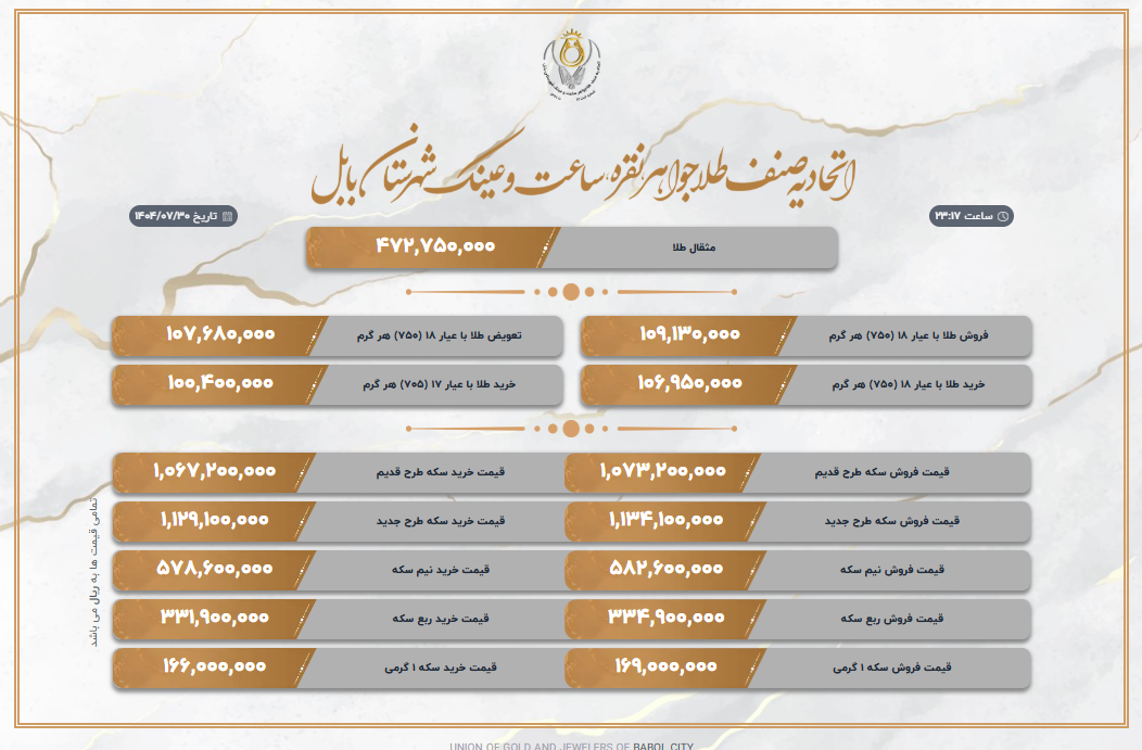 احتراما با توجه به مهلت تعیین شده(یکساله)طرح وبسایت اتحادیه صنف طلا و جواهر شهرستان بابل تا تاریخ ۱۴۰۴/۷/۲۸ منقضی میگردد،نظر به اینکه قطع سایت اعلام نرخ بصورت سیستمی بوده واتحادیه هیچ‌نقشی در قطع سایت نداشته،،ضمن عذرخواهی از اعضا محترم صنف زرگران ،لذا شایسته است به قید فوریت مبلغ ده میلیون ریال به حساب کارت آقای حسن نعمت زاده بالاگتابی